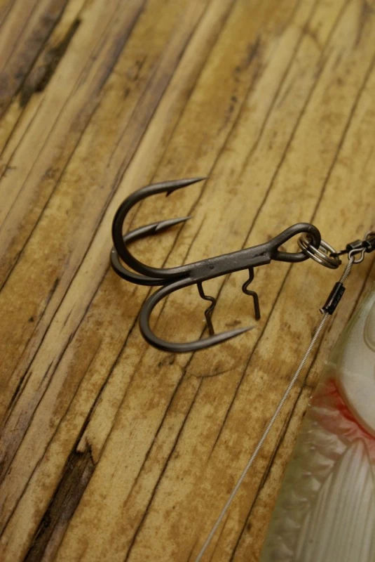 Tämä erityinen ””Claw Treble”” on taivutettu siten, että sen koura voidaan kiinnittää erittäin helposti mihin tahansa pehmeän vieheen osaan optimaalisesti, vieheen vahingoittumatta tai vaikuttamatta sen liikkeeseen. Ja kohokohta: kaikki kolme koukun kärkeä työntyvät vapaasti esiin iskemistä varten!